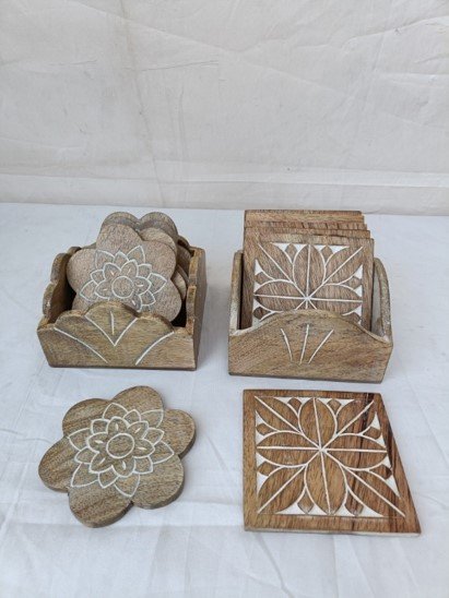The Wooden Coaster Set combines utility with refined presentation to protect tables while adding a stylish touch to serving experiences. Each coaster is precision-cut to ensure balance under mugs and glasses, while the wooden stand completes the look with an organised display. A perfect accessory for tea corners, dining tables and office desks.